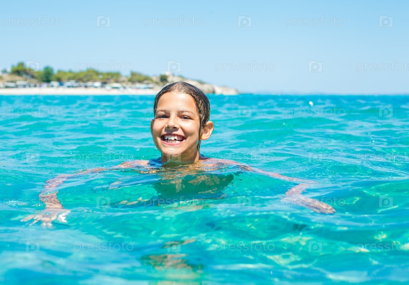 Девочка купается в море