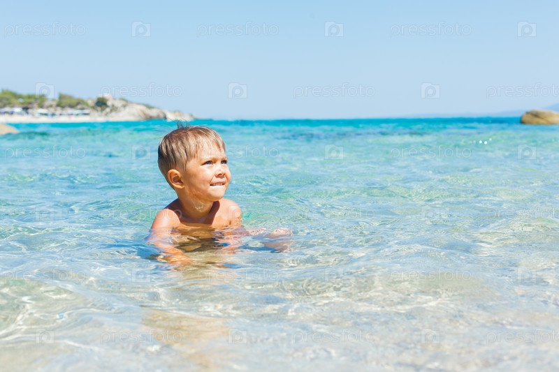 Мальчик купается в море