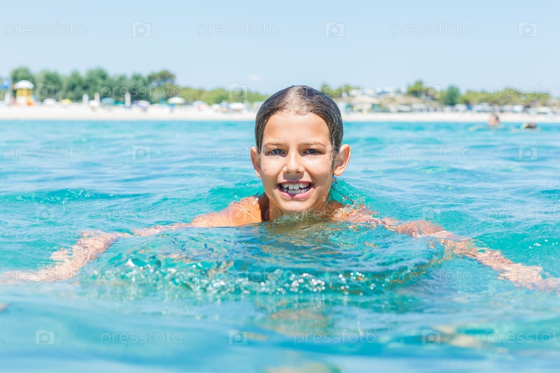 Девочка купается в море