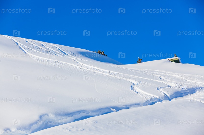 Снежный фон со следами от лыж