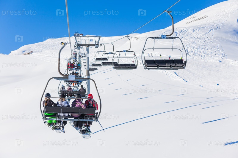 Лыжники на подъемнике