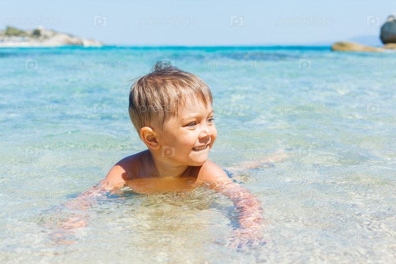 Мальчик купается в море