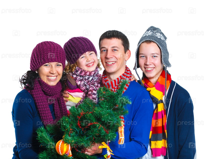 Семья с рождественской елкой