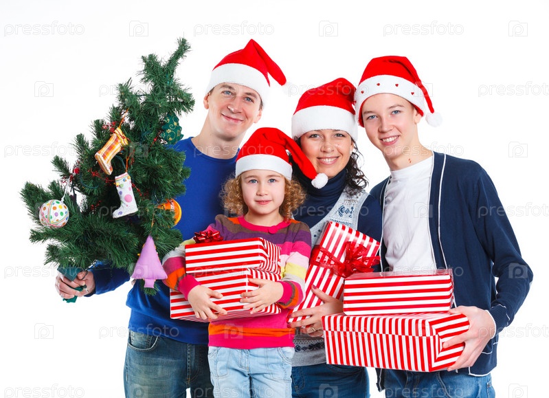 Семья в шапках Санта-Клауса