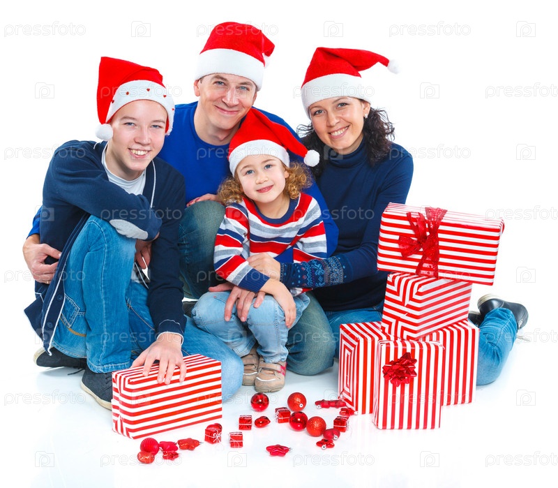 Семья в шапках Санта-Клауса