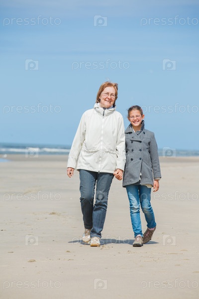 Девочка с бабушкой на пляже