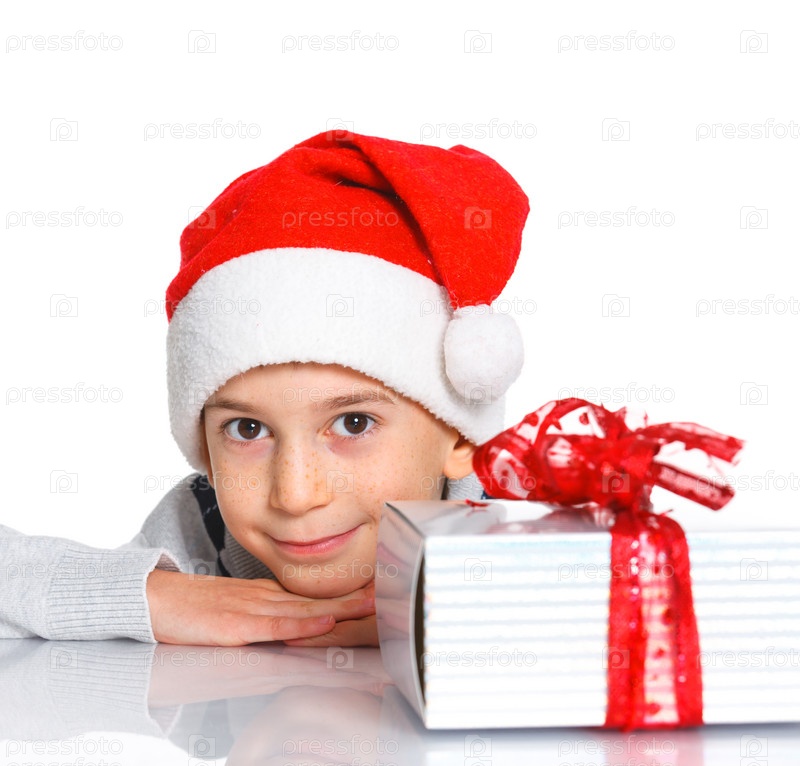Маленький мальчик в шапке Санта-Клауса