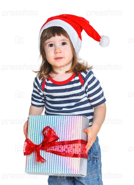 Маленькая девочка в шапке Санта-Клауса