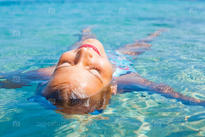 Девочка купается в море