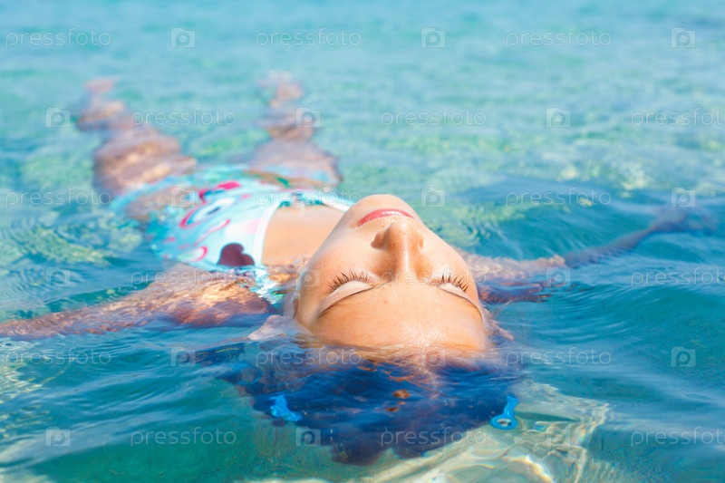 Девочка купается в море