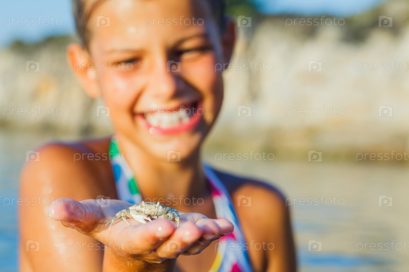 Девочка держит краба