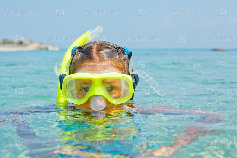 Девочка купается в море