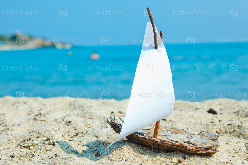 Игрушечный корабль на пляже