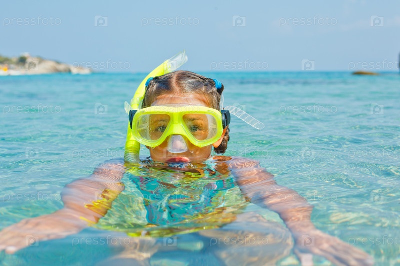 Девочка купается в море