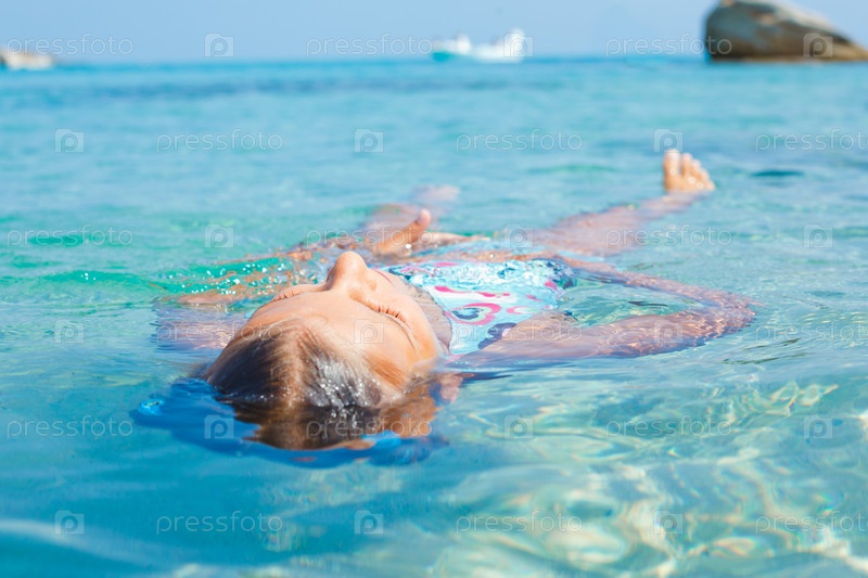 Девочка купается в море