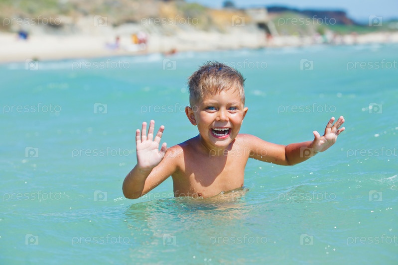 Мальчик купается в море