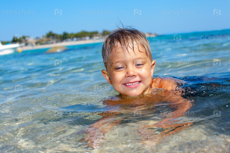Мальчик купается в море