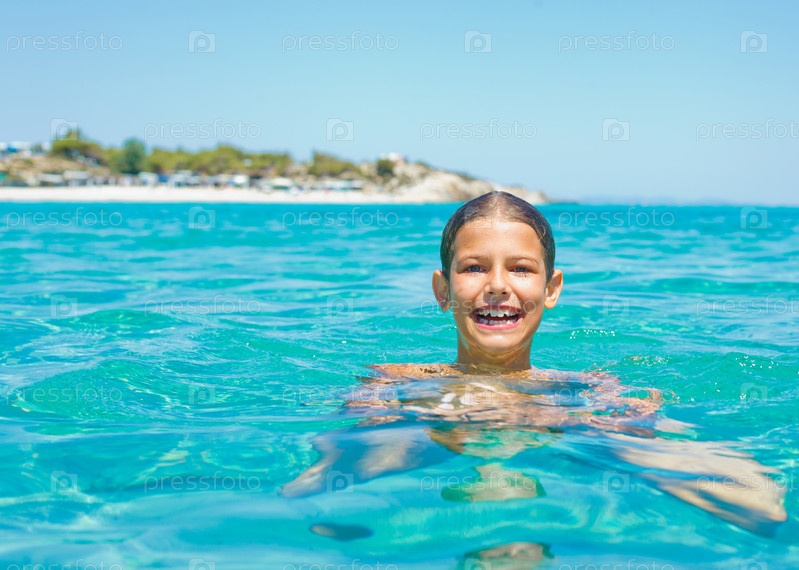 Девочка купается в море