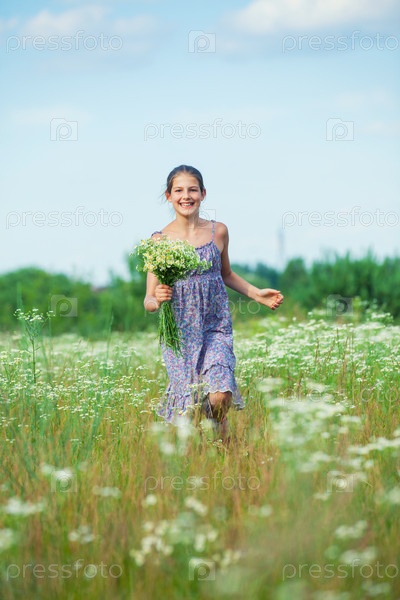 Девочка бежит по поляне