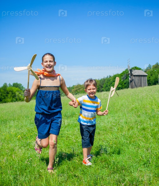 Дети бегут по поляне