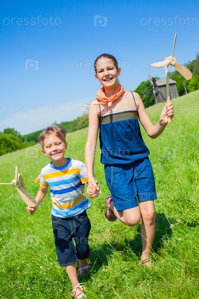 Дети бегут по поляне