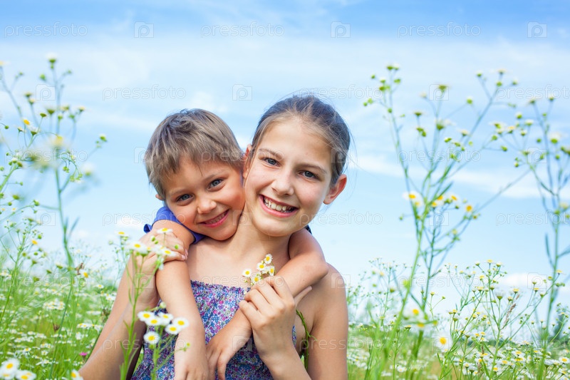 Дети среди весенних полевх цветов