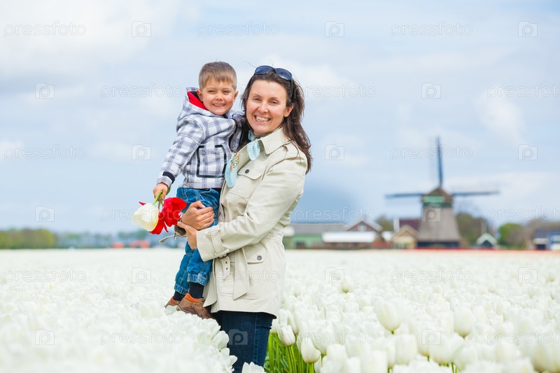 Мальчик с матерью в поле тюльпанов