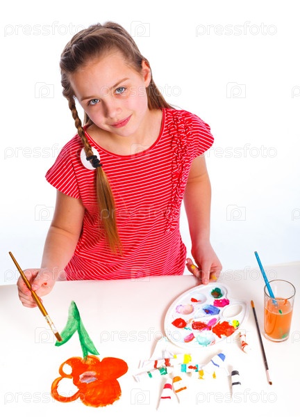 Девочка с краской на белом фоне