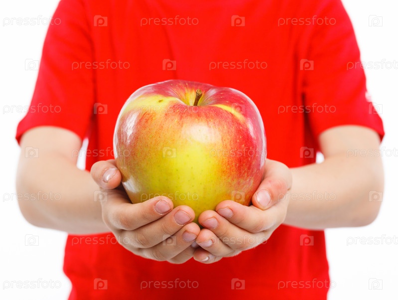 Руки ребенка с яблоком