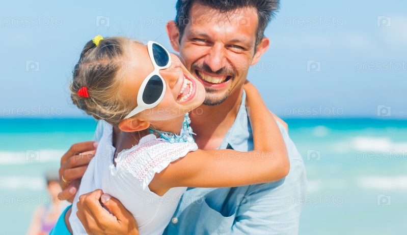 Отец и дочь на пляже