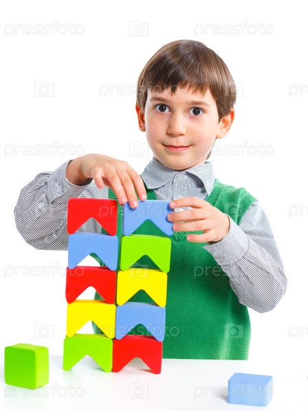 Мальчик складывает кубики