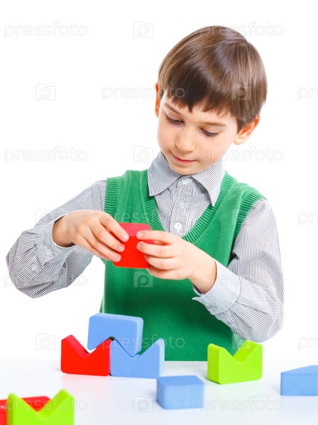 Мальчик складывает кубики