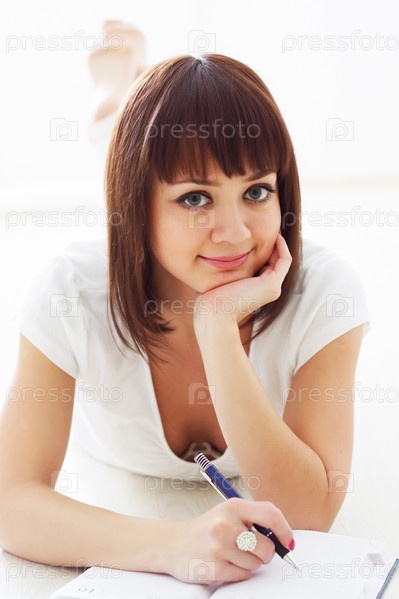 Девушка на полу с набором канцелярских принадлежностей