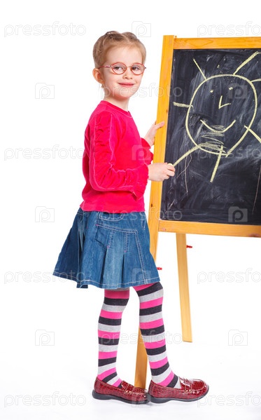 Маленькая девочка рисует на доске