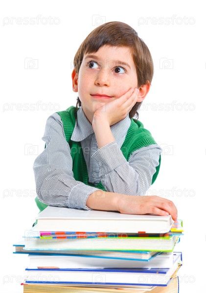 Забавный мальчик с книгами