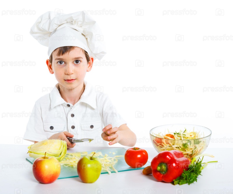 Мальчик готовит вкусный салат