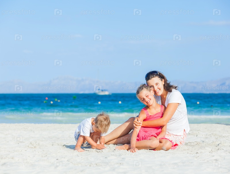 Семья на тропическом пляже