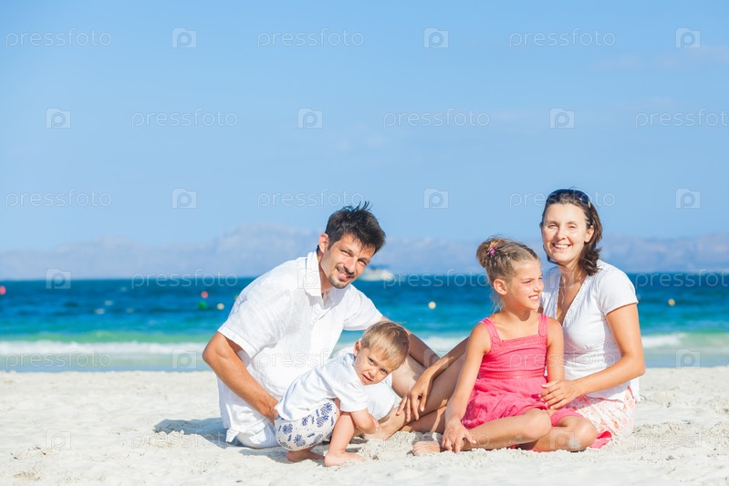 Семья на тропическом пляже