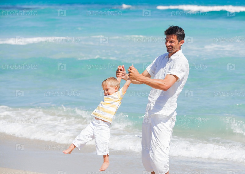 Отец и сын на пляже