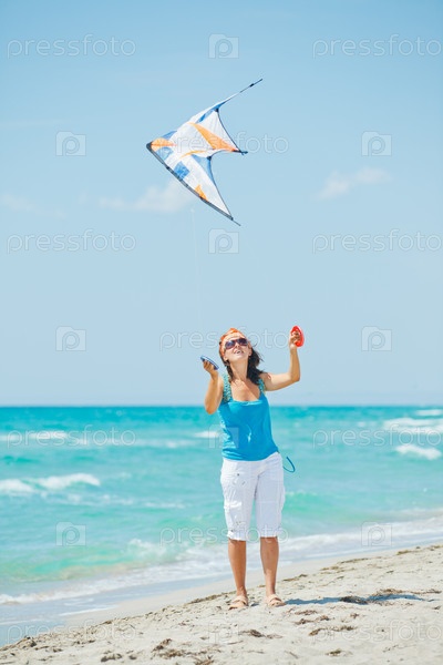 Женщина с воздушным змеем на пляже
