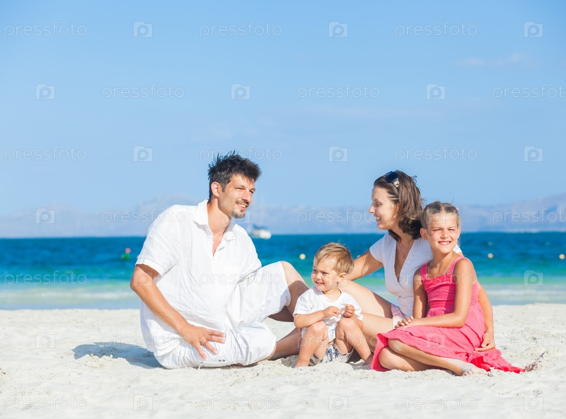 Семья на тропическом пляже