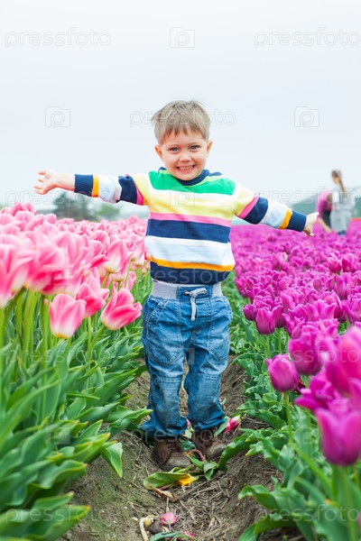 Мальчик в поле тюльпанов