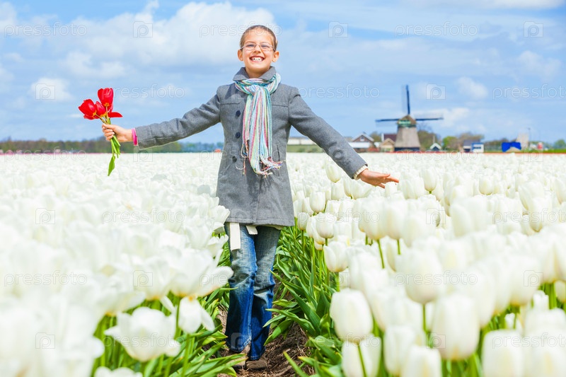 Девочка в поле тюльпанов