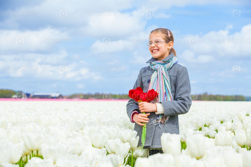 Девочка в поле тюльпанов
