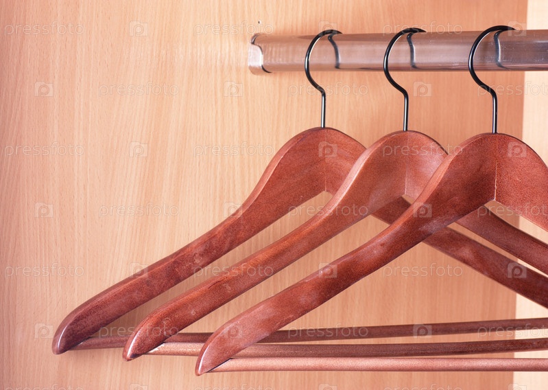 Три пустые вешалки для одежды в шкафу