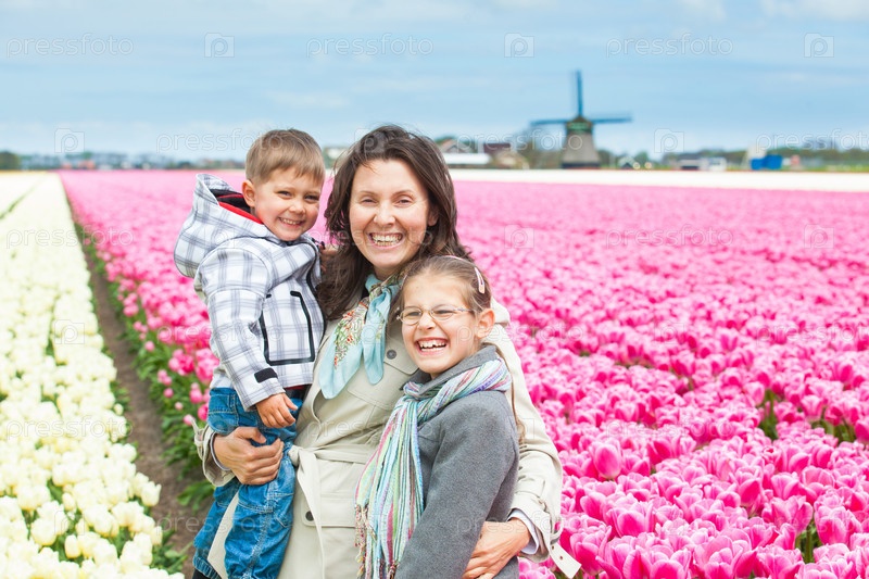 Семья на поле тюльпанов