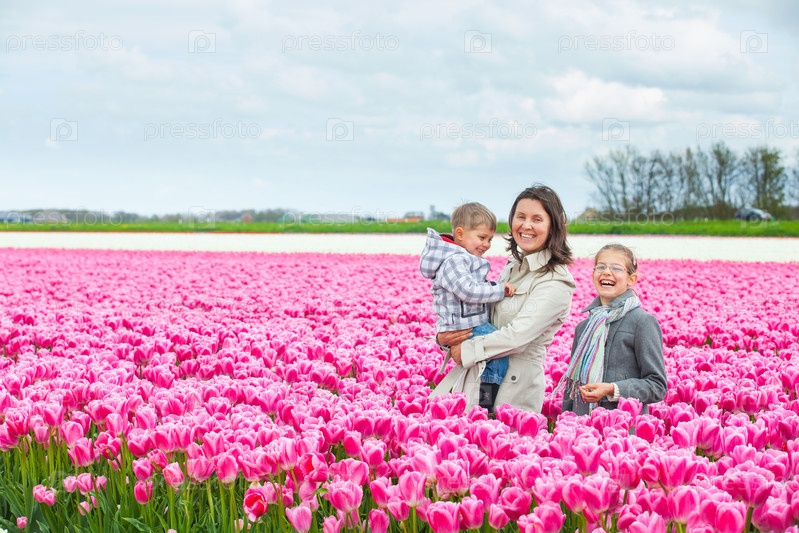 Семья на поле тюльпанов
