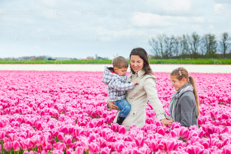 Семья на поле тюльпанов