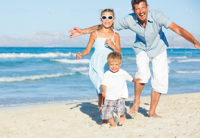 Счастливая семья на тропическом пляже