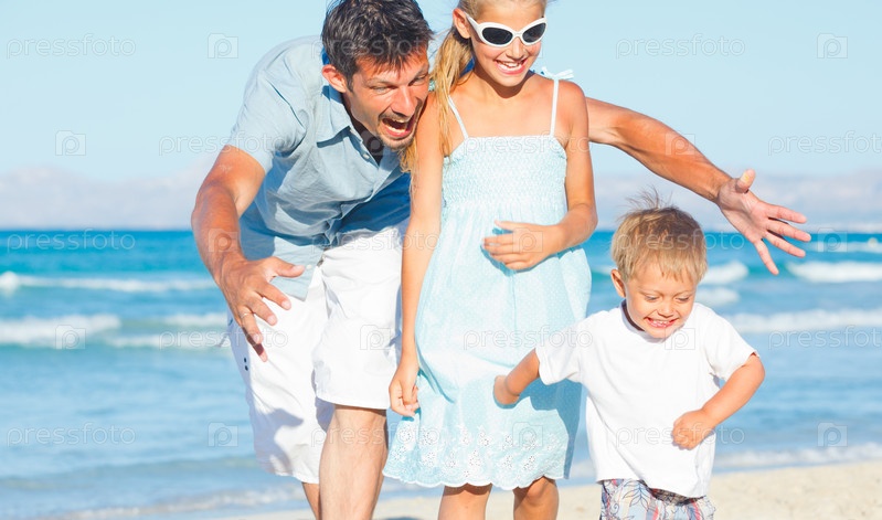 Семья на тропическом пляже